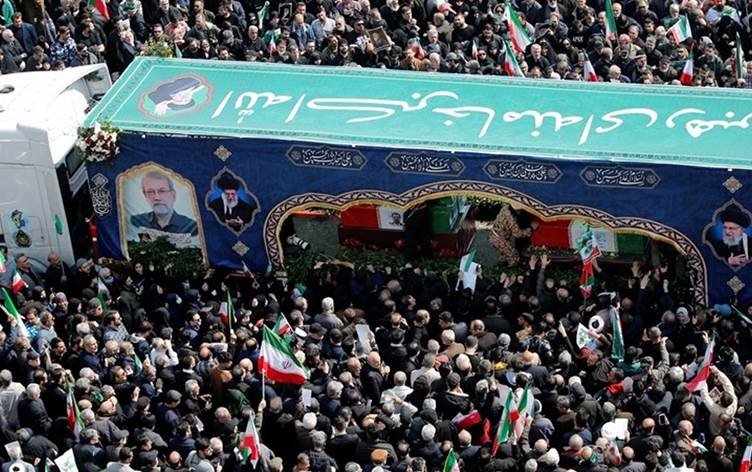 بە بەشداریی هەزاران ئێرانی، رێوڕەسمی تەرمی عەلی لاریجانی، سکرتێری ئەنجوومەنی باڵای ئاسایشی نیشتمانیی ئێران و غوڵامڕەزا سولەیمانی، فەرماندەی هێزی بەسیج و 84 ئەندامی هێزی دەریایی ئێران، لە گۆڕەپانی ئینقیلاب لە تارانی پایتەخت بەڕێوەچوو.