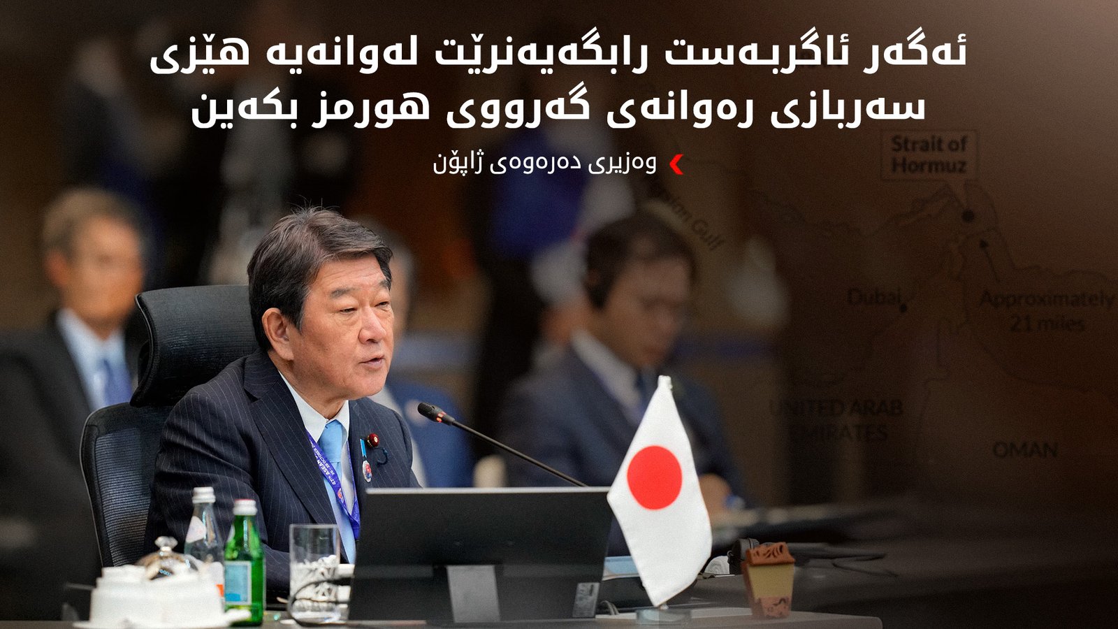 وەزیری دەرەوەی ژاپۆن دەڵێت، بە مەرجی ئاگربەست، وڵاتەکەی مینەکانی گەرووی هورمز پاک دەکاتەوە.
