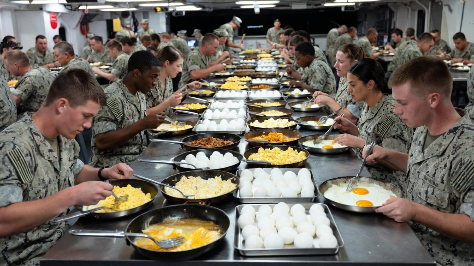 سێنتکۆم ئامارێکی سەرنجراکێشی لەبارەی بڕی خۆراکی سەربازەکانی لە ناو کەشتییە فڕۆکەهەڵگرەکانی رۆژهەڵاتی ناوەڕاست بڵاوکردەوە و ئاماژە بە بەکارهێنانی هەزاران هێلکە دەدات لە یەک رۆژدا.
